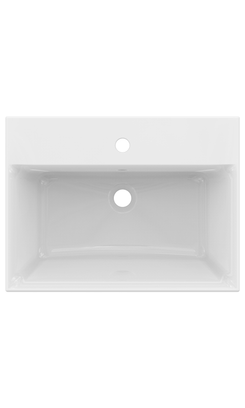 La superficie está tratada con el esmalte CEFIONTECT, que reduce la acumulación de residuos y facilita la limpieza. El modelo incluye orificio para grifería y rebosadero, y se fabrica en dos medidas: 500 y 600 mm.