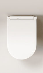 • El acabado especial con ribete blanco integral unifica cromáticamente el asiento con la cerámica para una estética minimalista